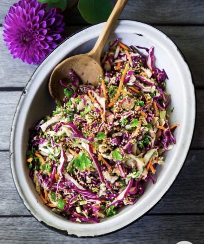Asian slaw w/ peanuts & herbs & a chilli/lime dressing (GF & vegan)